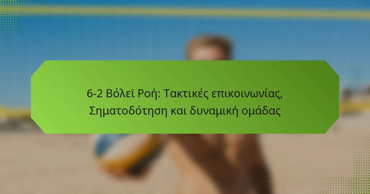 22/01/2026Το σύστημα περιστροφής βόλεϊ 6-2 είναι μια αποτελεσματική επιθετική στρατηγική που περιλαμβάνει έξι παίκτες και δύο εξειδικευμένους σεττερ, εξασφαλίζοντας μια δυναμική και ισχυρή επίθεση. Η επιτυχής εφαρμογή του βασίζεται σε μεγάλο βαθμό στην αποτελεσματική επικοινωνία, όπου οι σαφείς λεκτικές και μη λεκτικές ενδείξεις ενισχύουν την ομαδική εργασία και τη γρήγορη λήψη αποφάσεων, προάγοντας την εμπιστοσύνη μεταξύ των παικτών. Επιπλέον, η χρήση τεχνικών σήμανσης, όπως σήματα χεριών και οπτικές ενδείξεις, μπορεί να βελτιώσει σημαντικά τον συντονισμό και τη συνολική απόδοση στο γήπεδο.