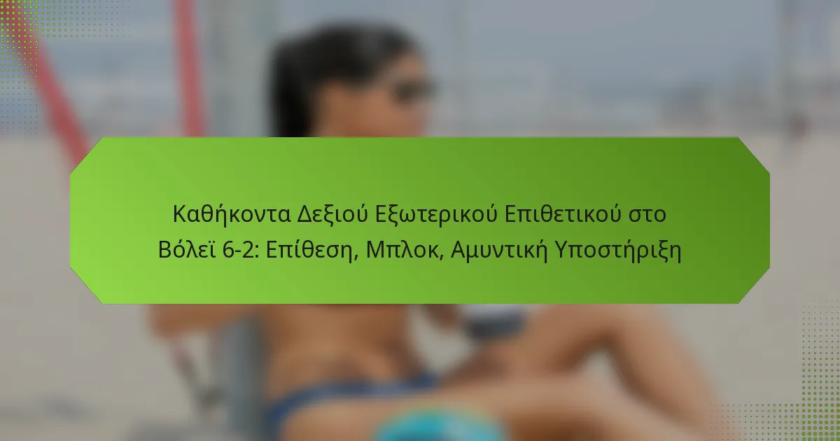 21/01/2026Στο σύστημα βόλεϊ 6-2, ο επιθετικός από τη δεξιά πλευρά παίζει καθοριστικό ρόλο εστιάζοντας στην επίθεση από τη δεξιά πλευρά, μπλοκάροντας τους αντιπάλους και παρέχοντας απαραίτητη αμυντική υποστήριξη. Αυτή η θέση απαιτεί έναν μοναδικό συνδυασμό επιθετικών και αμυντικών δεξιοτήτων, απαιτώντας από τους παίκτες να είναι ικανοί σε διάφορες τεχνικές και στρατηγικές. Οι αποτελεσματικοί επιθετικοί από τη δεξιά πλευρά όχι μόνο ενισχύουν το σκορ τους, αλλά συμβάλλουν σημαντικά στην συνολική απόδοση της ομάδας τους μέσω της ομαδικής δουλειάς και της κατανόησης της κατάστασης.